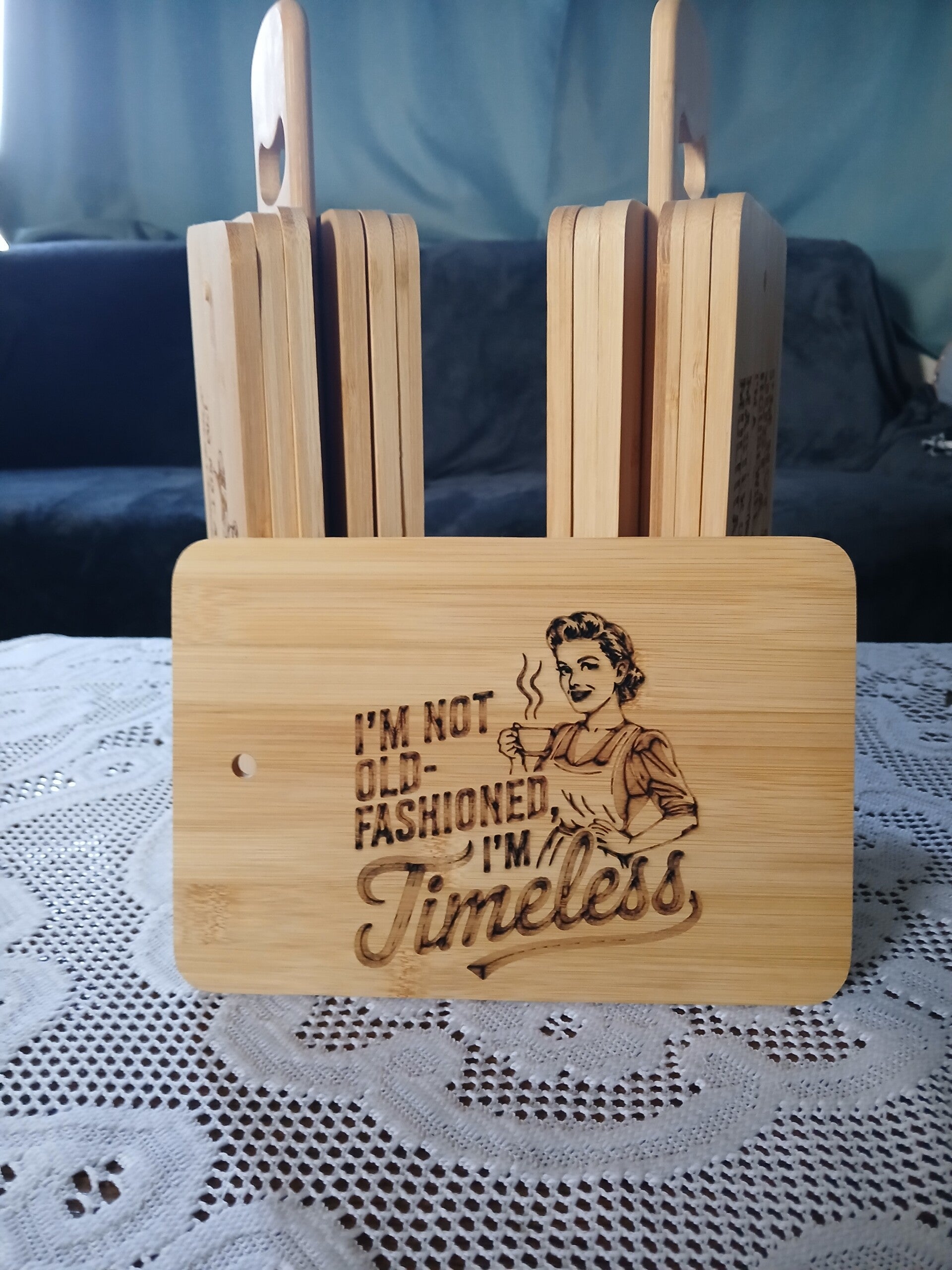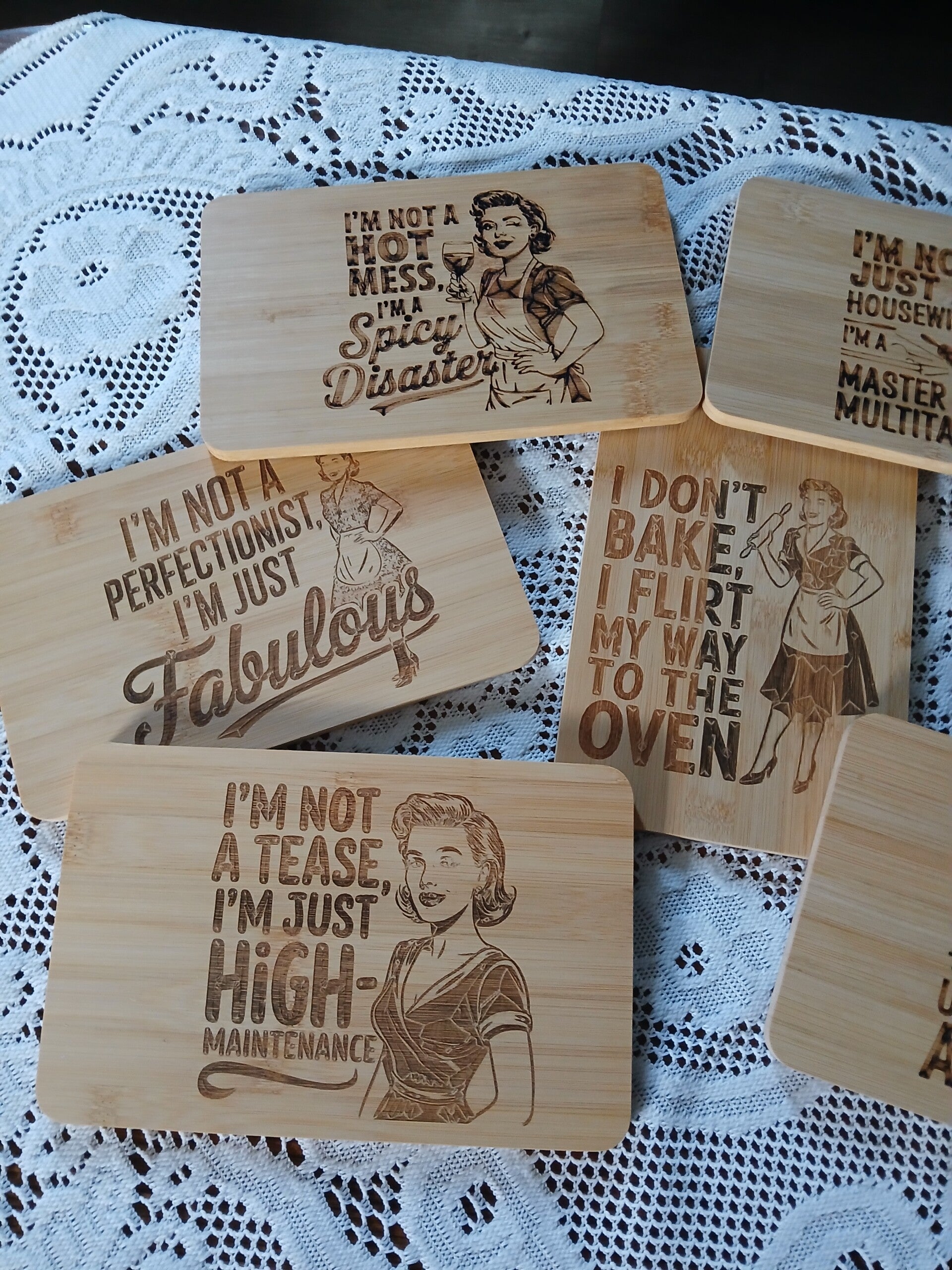 Deze bamboe broodplankjes zijn dé perfecte mix van humor, stijl en ambacht. Elk plankje is zorgvuldig CO₂-laser gegraveerd met een vrouwvriendelijke, speelse quote die elke keuken net dat tikkeltje extra geeft.